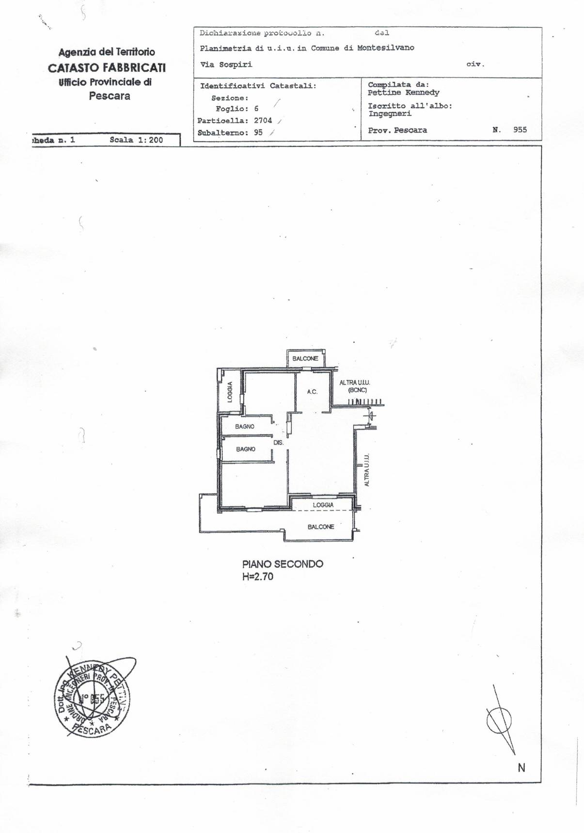 Vendesi a Montesilvano in zona semicentrale ben servita vicina a tutti i servizi, negozi e scuole Appartamento posto al piano secondo composto da soggiorno, cucina, camera matrimoniale, ampia cameretta, due bagni entrambi finestrati, ampio balcone zona giorno con tende motorizzate in cui poter pranzare o cenere in estate, balcone e loggia zona notte. Completa l'immobile garage al piano interrato di mq 23 circa.L'immobile si presenta in buonissime condizioni ed è possibile ove fosse necessario ricavare una terza cameretta. Possibilità di acquisto secondo garage al piano terra.