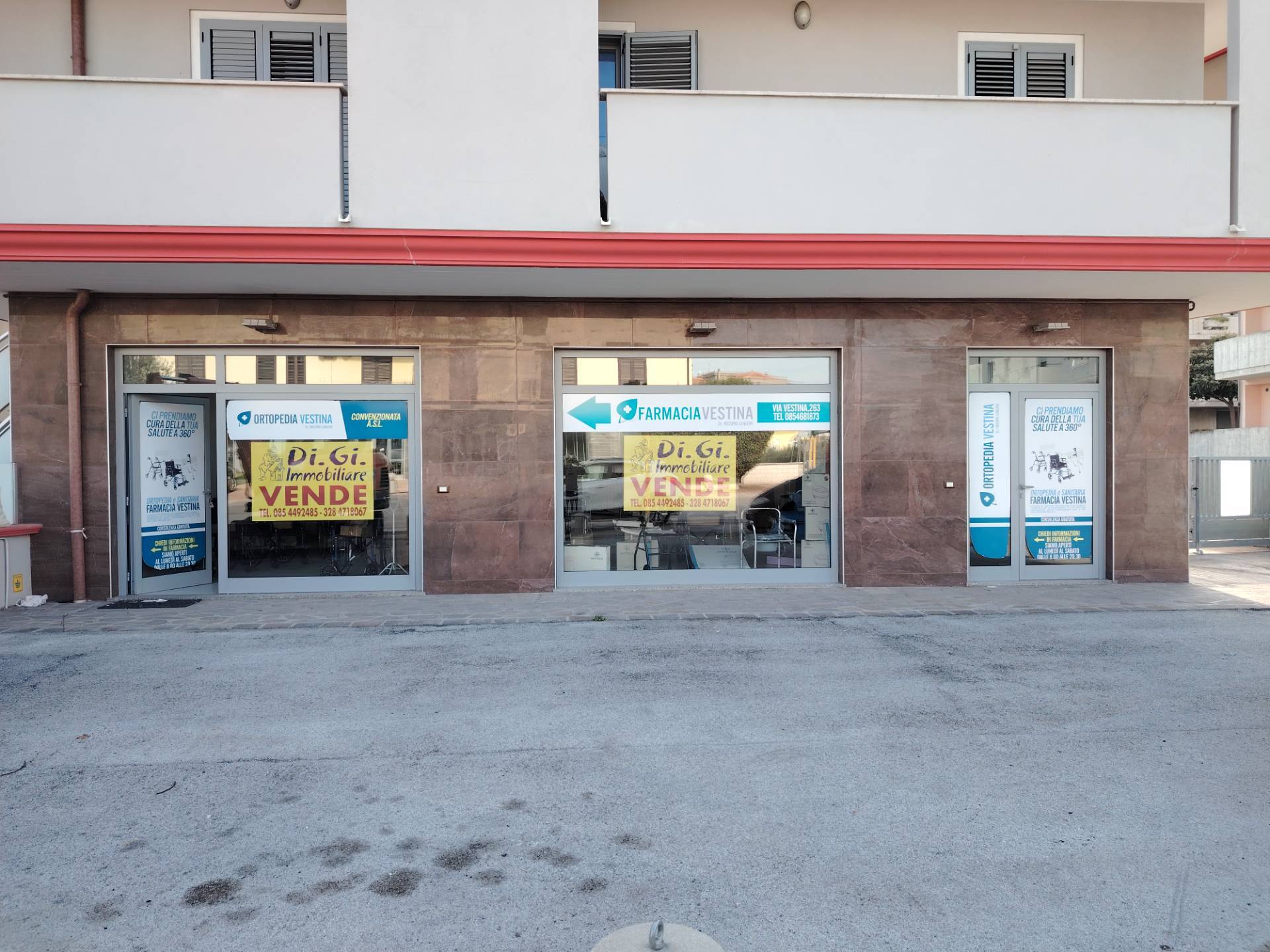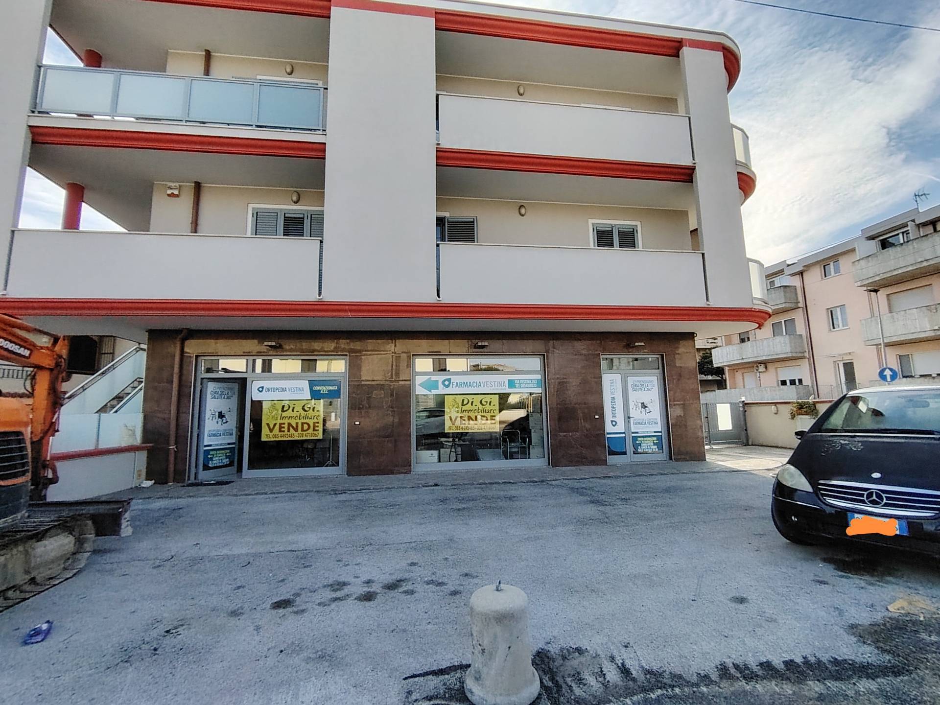 Vendesi a Montesilvano zona via Vestina fronte strada Locale commerciale al piano terra con due vetrine in buonissimo stato con piazzale esclusivo di mq 87 .