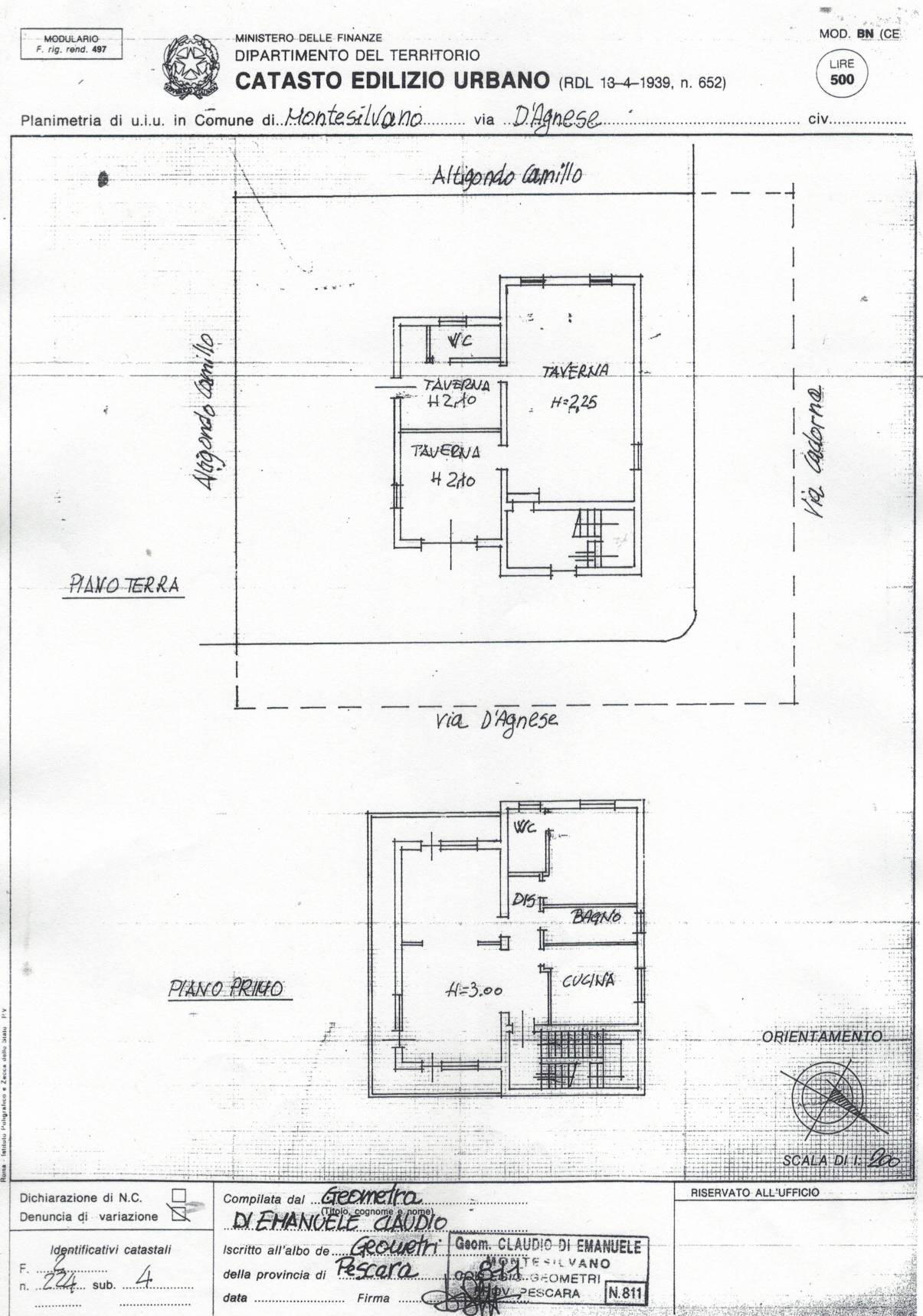 Vendesi a Montesilvano zona centrale vicino a tutti i principali servizi, negozi, scuole Casa singola su tre livelli composta da piano terra taverna, studio, wc; Piano primo appartamento con soggiorno, cucina, due camere, bagno, wc, balcone; Piano secondo mansardato appartamento con soggiorno, cucina, due camere, bagno, balcone. E' presente un'area esterna ed il giardino. L'immobile è in discrete condizioni ed è parzialmente da ristrutturare ed al suo interno è presente anche un'ascensore montacarichi.