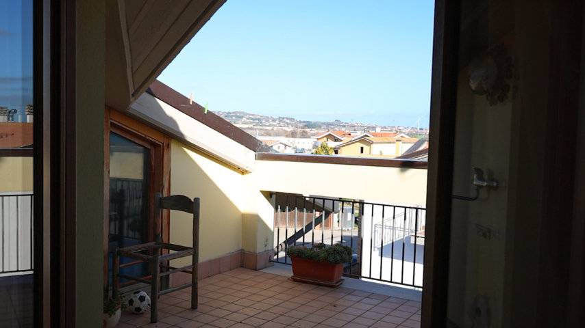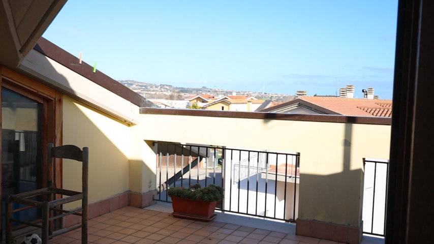 Vendesi a Montesilvano zona via Vestina Appartamento in piccola palazzina di solo due unità no condominio disposta su due livelli con al piano secondo soggiorno, cucina, camera matrimoniale, bagno, terrazzino, balcone; piano terzo sottotetto con tre locali deposito occasionali, bagno, due balconi: Completa la proprietà garage al piano terra e posto auto.